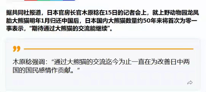 近日,上野动物园宣布将归还龙凤胎大熊猫,这意味着日本国内即将面临五十多年来首次没有大熊猫的状况。官房长官木原稔虽表态希望继续通过熊猫促进国民感情,但如果日本政客继续在台湾问题上挑战中方底线,两国关系的裂痕恐怕不是几只熊猫能够弥补的。